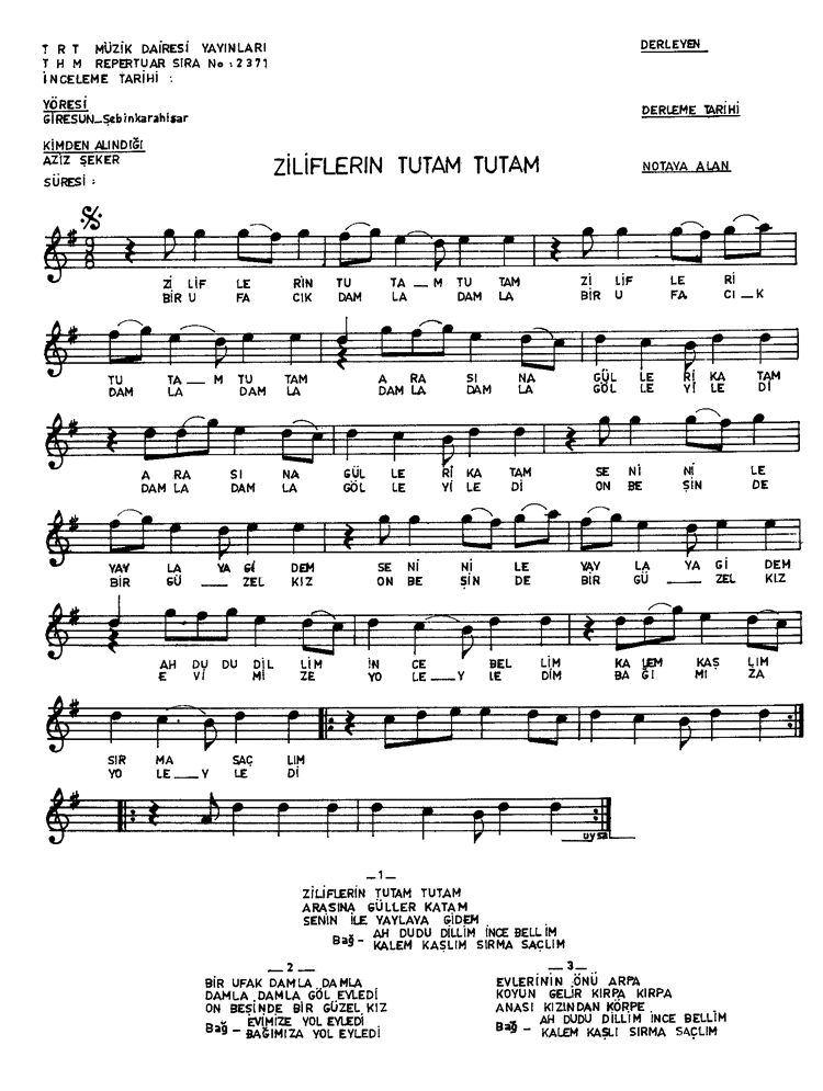 | Nota Bilgileri | Türkü Dinle | Adım adım Türkiye | Linkler |